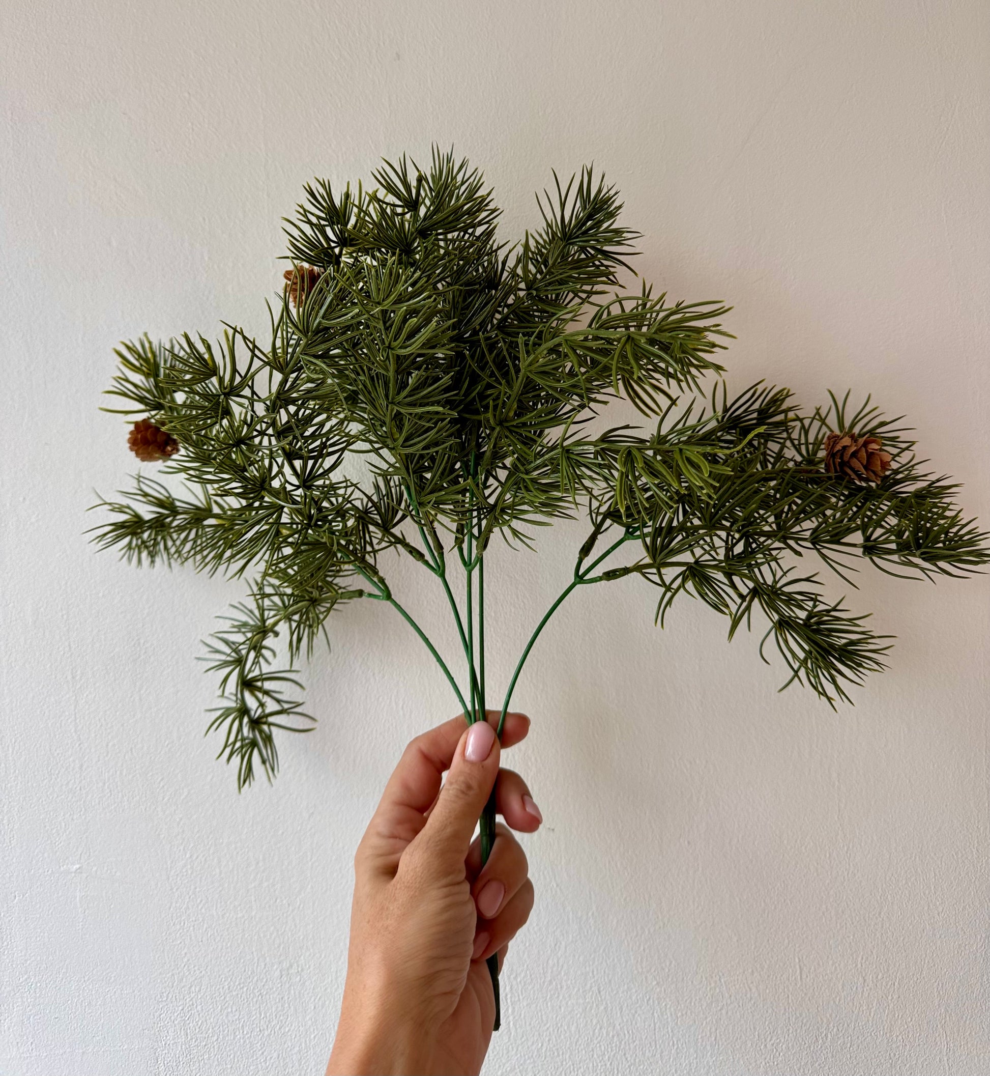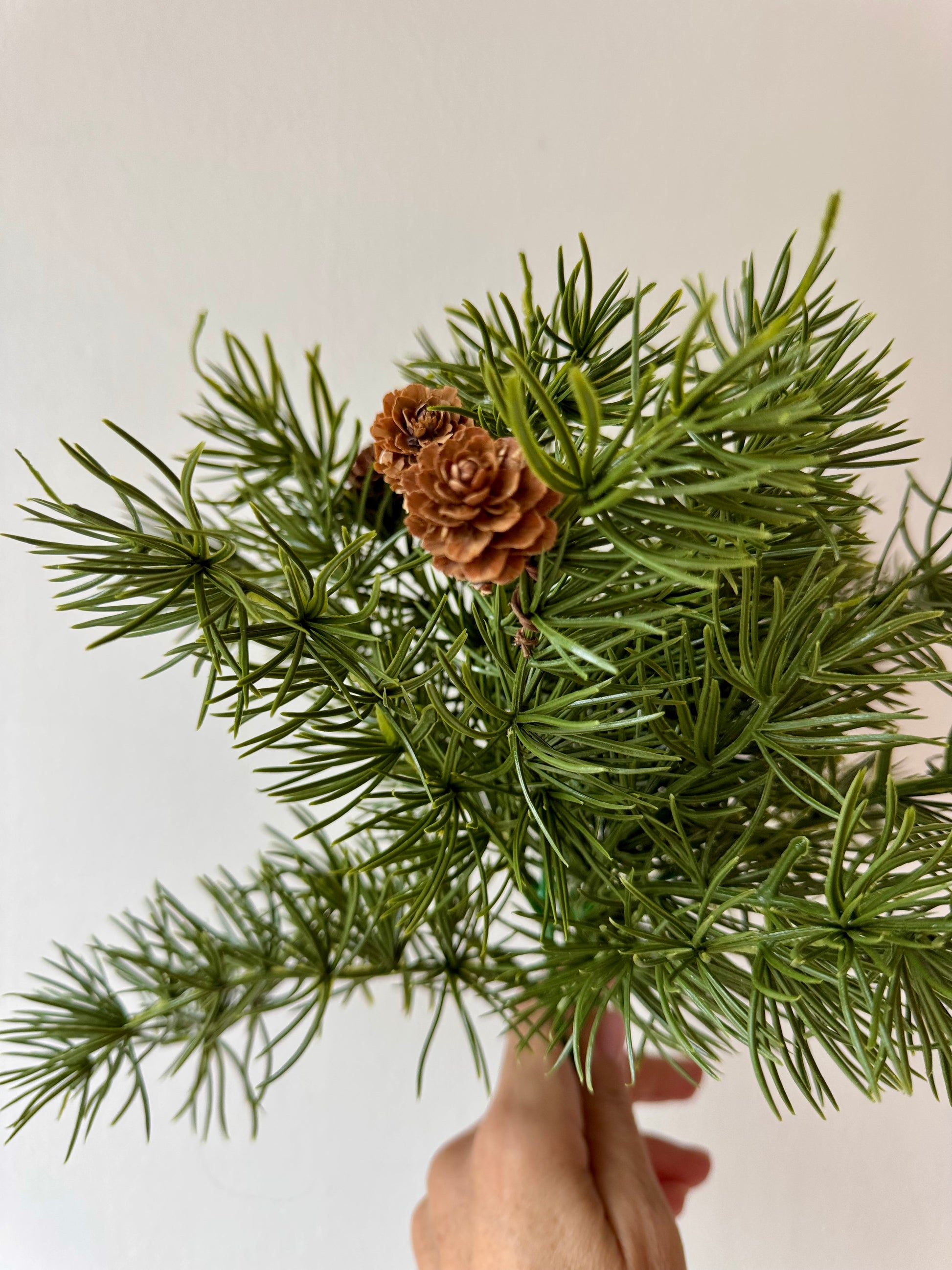 Teljes magassága 40cm. Csípőfogóval a kívánt méretre vágható. Alul Forrasztva, 4 tobozzal.